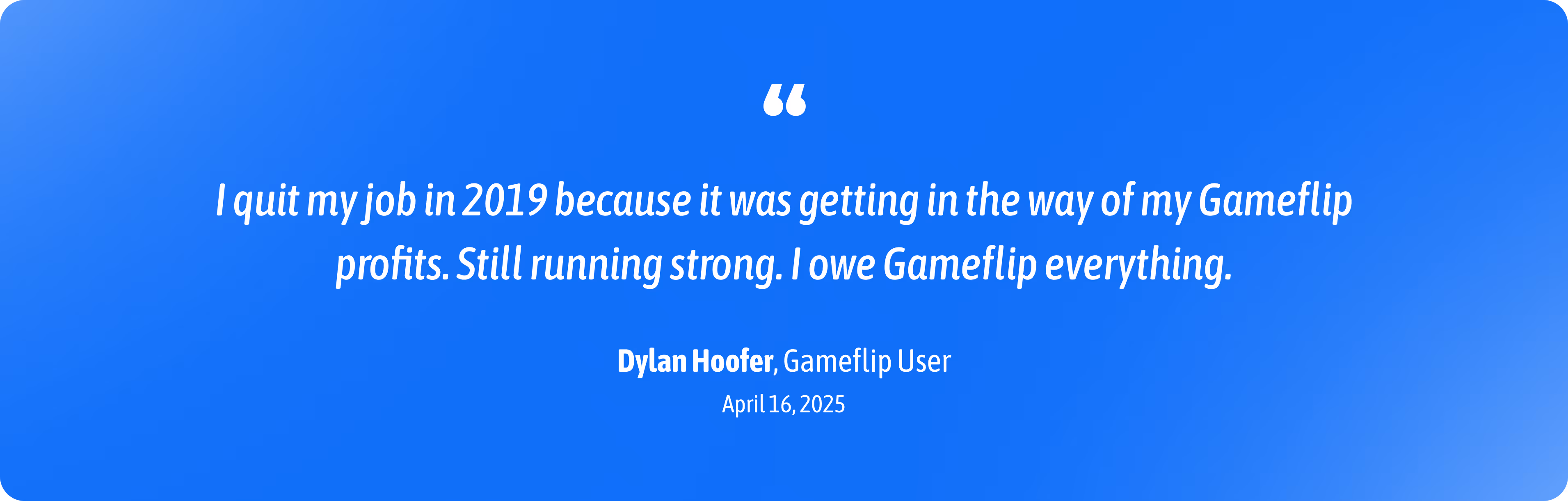 Profitable since the start of 2025, Gameflip is the marketplace for gamers powered by advanced technology that ensures simple, safe transactions for everything gaming. Join a roster of over 1,000 investors, including seasoned Silicon Valley VCs, and pioneers who invested early in Zynga, PayPal, & a visionary co-founder from Electronic Arts (EA).